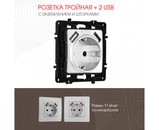 Розетка с заземлением, шторками + 2 USB Arte Milano 217.47-1.silver от бренда Arte Milano производства РОССИЯ. Розетка с заземлением, шторками + 2 USB Arte Milano 217.47-1.silver - отличный выбор по выгодной цене! Закажите эту модель в интернет-магазине «Северное сияние».