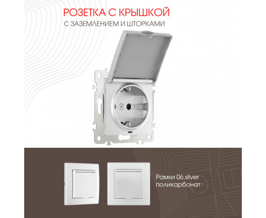Розетка с заземлением, шторками и защитной крышкой Arte Milano 206.41-1.silver от бренда Arte Milano производства РОССИЯ. Розетка с заземлением, шторками и защитной крышкой Arte Milano 206.41-1.silver - отличный выбор по выгодной цене! Закажите эту модель в интернет-магазине «Северное сияние».