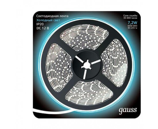 Светодиодная лента Gauss 7,2W/m 30LED/m 5050SMD холодный белый 5M 312000307 от бренда Gauss производства РОССИЯ. Светодиодная лента Gauss 7,2W/m 30LED/m 5050SMD холодный белый 5M 312000307 - отличный выбор по выгодной цене! Закажите эту модель в интернет-магазине «Северное сияние».